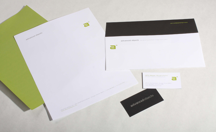 --- Corporate identity for a Chicago-based technology firm. Mark reflects the intelligent relationships within object-oriented programming with an oblique reference to technical diagramming conventions. It's the a to the o, yo.
